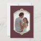 WINE RED BURGUNDY AND GOLD SAVE THE DATE WITH PHOTO | This is a fabulously ornate, enameled gold dimensional look baroque frame over a subtle damask tone-on-tone burgundy wine red background. Your engagement photo is beautifully framed on the reverse side. The artwork was graphically designed by internationally licensed artist, Audrey Jeanne Roberts ©
