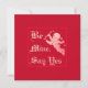 "Be Mine, Say Yes" quote, over a classic, bright, cranberry red background, finished with elegant, decorative text... accompanied by a young, adorned, cupid. Perfect for the romantic! Also makes a great way to pop the question on Valentine's Day. On the back, you'll find a template for memorialising the occasion. Background colour is customisable, as are the text, font styles and colours.