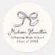 Add a sophisticated touch to your graduation celebration with these personalised graduation stickers, featuring a hand-drawn black bow atop a soft cream background. The graduate’s name is elegantly displayed in an elegant, whimsical black script, with their school and graduation year shown below for a custom finish. These versatile stickers are perfect for sealing envelopes, adorning party favours, decorating gift bags, and more. With their classic design and timeless elegance, these stickers are the perfect way to add a memorable and personalised touch to any graduation event.
