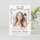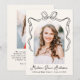 Celebrate your graduate’s achievement with this charming graduation announcement, featuring an arch-shaped photo framed by a hand-drawn black bow and ribbon on a soft cream background. The graduate’s name is displayed in elegant black script, along with their school name and graduation year, adding a personalised touch. The back includes a second photo with space for custom text, ideal for sharing graduation details, future plans, or a heartfelt message. With its classic design and timeless elegance, this announcement offers a sophisticated way to share your graduate’s success with family and friends!