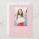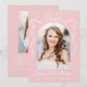 Share your graduate’s exciting milestone with this charming graduation announcement, featuring an arch-shaped photo framed by a hand-drawn white bow and ribbon on a soft pink background. The graduate’s name is displayed in a whimsical white script, with space to personalise their school name and graduation year for a unique touch. The back showcases a second photo with customisable text, ideal for sharing graduation details, future plans, or a heartfelt message. With its modern aesthetic and vintage-inspired charm, this stylish announcement is a timeless way to celebrate your graduate’s success with family and friends!