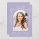 Celebrate your graduate’s achievement with this charming graduation announcement, featuring an arch-shaped photo framed by a hand-drawn white bow and ribbon on a soft purple background. The graduate’s name is displayed in a whimsical white script, along with their school name and graduation year, making this announcement truly personalised. The back includes a second photo with space for custom text, perfect for sharing graduation details, future plans, or a heartfelt message. With its modern design and vintage-inspired flair, this stylish announcement offers a timeless way to share your graduate’s success with family and friends!