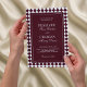 Elegant Vintage Burgundy Checkered Formal Wedding Invitation