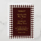 Celebrate your special day with our elegant gold foil wedding invitation template featuring a deep burgundy and ivory checkered pattern with graceful script typography. Perfect for couples seeking a vintage yet modern design, this layout blends formal sophistication with warm maroon accents. The timeless color palette and stylish lettering make it ideal for classic weddings, formal events, and romantic celebrations. Easy to customize, this template offers a graceful, polished look that captures both tradition and contemporary charm.