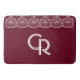 A unique custom-made bath mat rug for your bathroom decor. Elegant Vintage Victorian Burgundy Maroon White Lace Bath Mat Rug. Personalise with your own initials. Great gift idea.