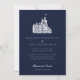Elegant Vintage Castle Illustration Navy Wedding Invitation