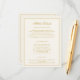 Monogrammed formal traditional faux gold and soft cream ivory wedding invitation details enclosure card with crest monogram and frame border featuring a vintage elegant minimalist calligraphy script. +++++++++++ Suitable for classy luxury old money simple elegance trendy sophisticated weddings.
