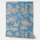 Vintage blue turquoise de jouy printed Wallpaper. This toile de jouy vintage Wallpaper is inspired by the exquisite designs of french countryside scenes. These sophisticated Toile prints are an all time rage at the moment, beautiful designs that bring natural beauty to any room. Perfect for creating a serene and elegant atmosphere, this wallpaper combines both traditional charm and contemporary style. The designs are classic and timeless with stylish classy colours.