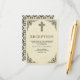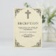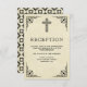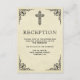 Elegant reception card featuring an elegant black ornate border and decorated cross against a vintage parchment background.