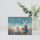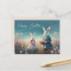 Elegant Easter bunny boy and girl dressed in vintage clothes with easter eggs