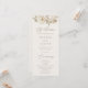 Elegant vintage floral wedding program featuring a top border of watercolor flowers and foliage in warm neutral tones of white, beige, ivory, gold, and brown. The neutral floral design is complimented by a modern calligraphy script. Personalise the front of the boho floral wedding program with your names, wedding date and location, and order of the ceremony. The program reverses to display a list of your wedding party. Designed to coordinate with our Elegant Vintage Floral wedding collection.