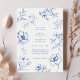 Elegant Vintage Floral French Blue Wedding stationery design. It features a beautifully crafted script at its core, exuding sophistication and romance, delicately framed by a vintage blue flower arrangement. The meticulously detailed blossoms evoke the charm and grace of a bygone era, creating a beautiful visual harmony. Each element is thoughtfully placed to draw the eye towards the centerpiece script, making it ideal for couples seeking a blend of classic beauty and refined artistry for their special day. Please get in touch with us for design assistance via Zazzle Chat. We will be sure to respond within 12 hours.