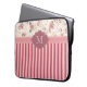 This case features a pink and cream rose pattern with stripes, and a monogram in the centre.
