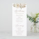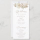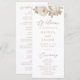 Elegant vintage floral wedding program featuring a top border of watercolor flowers and foliage in warm neutral tones of white, beige, ivory, gold, and brown. The neutral floral design is complimented by a modern calligraphy script. Personalise the front of the boho floral wedding program with your names, wedding date and location, and order of the ceremony. The program reverses to display a list of your wedding party. Designed to coordinate with our Elegant Vintage Floral wedding collection.