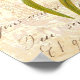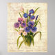 Beautiful vintage botanical illustration with Irises and antique french language text and handwriting overlay in background.