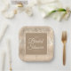 Elegant vintage gold and champagne bridal shower square paper plates personalised with the name of the bride to be and her shower date. Contact me for assistance with your customisations or to request additional matching or coordinating Zazzle products for your shower.