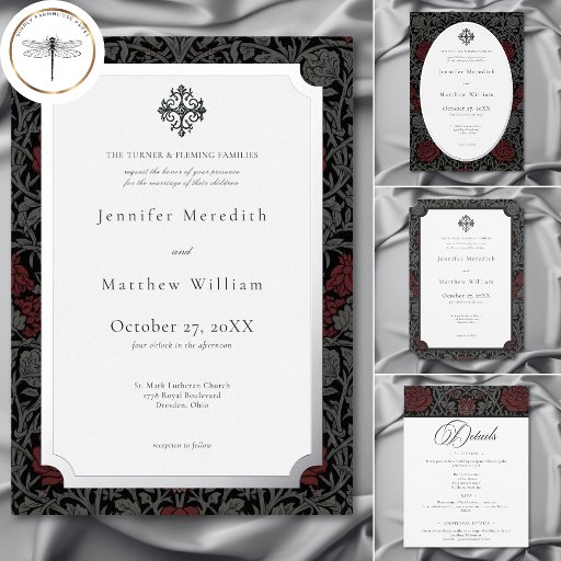 Elegant Vintage Gothic Moody Botanical Wedding Invitation