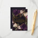 The dark and bright purple florals on the card evoke a sense of romance and mystery, while the elegant gold and wood accents add a touch of luxury and sophistication.