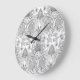 Elegant Vintage Grey White Flowers Pattern Large Clock