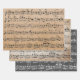 Set of three old pencil handwritten musical scores on music sheet on kraft paper background, perfect for a classy and elegant gift wrap for the holiday season or any other occasion, especially for a music lover or for decoupage crafts.