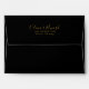 Expectations met; I liked that I had the opportunity to include our address on the back of the envelope. This color matched very well with my save the date. The color was the same as shown above. I had our address labeled on the back of the envelope and the font/printing met my expectations.