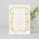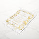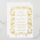 Vintage illustration of an ornate frame with floral, botanical (fruit, branches, leaves, vines), animal (birds, insects) elements and a bow for a classy wedding. The ornamental border and the bride & groom's names are in real gold foil.