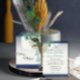 Navy blue version of the popular Peacock themed wedding invitation suite that combines an exquisite vintage peacock with original watercolor peacock feathers and decorative printer's ornaments from the turn of the last century. Copyright, Audrey Jeanne Roberts.
