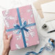 Elegant Vintage Pink and White Snowflakes Wrapping Paper