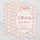 Elegant Vintage Pink Bow Floral Birthday Invitation