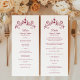 Delight your guests with this elegant vintage romance burgundy red double-sided menu card. The front features a beautifully designed menu with rustic chic, floral chinoiserie line art and refined calligraphy script typography, while the back showcases a curated drinks menu. Customizable to complement your wedding theme, this design adds both style and function to your table settings.