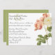 Lovely custom wedding invitation done in white, with a beautiful vintage illustration of pale pink and ivory roses, on the right side, of the invitation. A pale green band decorates the left side of the invitation and on the back is solid light green. Text, in black script, is fully customisable to suit your wedding needs. Matching products available.