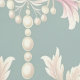 This elegant and feminine design features a sage green and pink watercolor damask print with faux decorative pearl print accents.