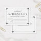 Elegant and minimalist certificate of authenticity in dark grey and white to which you can add your name or business name inside a vintage frame.