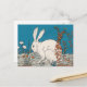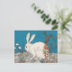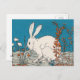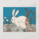 This is a vintage illustration of a white rabbit. He is sitting in a patch of grass and flowers. Elegant colour scheme of blue, grey and orange. See my store Art by MAR for matching products with this design.