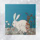 This is a vintage illustration of a white rabbit. He is sitting in a patch of grass and flowers. Elegant colour scheme of blue, grey and orange. See my store Art by MAR for matching products with this design.