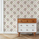 Add a touch of elegance to your walls with this beautiful wallpaper, featuring a wildflower design in the centre of diamonds, which are also made of little flowers. Great for a little girl's nursery, bedroom, or playroom...or for any other use! The main colours are shades of lavender, golden yellow, and dark sage green. The background colour (shown in off white) can be customised, if desired. Please note: There are some slight texture accents that are difficult to see in the preview images.