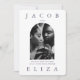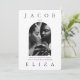 Elegant violet photo wedding invitation features a modern layout with bold typography and a violet back of the invitation editable to your custom colour!