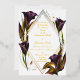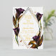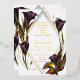 Your invited guests will gush over this romantically beautiful invitation. These Gold Foil Invitations display bold dark purple Calla Lilies overlaying a metallic frame with bright gold foil font.