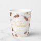These music themed Christmas paper cups feature a pattern violins entwined with gold ribbons of music staves on a subtle marble background texture, with elegant script Merry Christmas, and personalisation template for your name or other text.