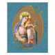 Featuring a custom designed traditional Catholic religious image of the Virgin Mary and the Child Jesus holding a globe of the world on a decorative turquoise background.