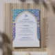 Elegant Walima Invitation – Teal & Turquoise Geometric Arch with Gold Accents | Beautiful Islamic Design with Arabic Calligraphy and Modern Script.