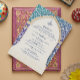 - Design: Intricate geometric arch in teal, turquoise, and navy, framed by Islamic-inspired columns on a soft ivory background with gold accents.