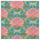 Elegant Water Lilies Dragonfly on Deep Blue Fabric