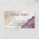 Make a lasting impression with these elegant and modern business cards! Featuring a stunning marble design in rich purple and white hues, accented with luxurious gold details, these cards exude sophistication and professionalism. Perfect for hairstylists, makeup artists, nail technicians, or beauty professionals, the customisable text allows you to add your name, contact information, and social media links. Showcase your brand in style and leave a memorable mark with these premium, eye-catching business cards!