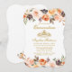 Modern Elegant Watercolor Floral Quinceañera Invitation Card includes beautiful autumn flowers. Orange roses, peach roses, golden roses, pink roses, plum coloured succulents, white roses, eucalyptus leaves and other botanical greenery. Gold Crown. Bracket Style.