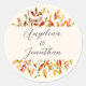 Elegant Watercolor Autumn Leaves Custom Wedding Classic Round Sticker