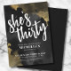 Elegant Thirty Watercolor Black And Gold 30th Birthday Invitation. You can change it to any birthday year! 30, 40, 50 or even for other events! Let's celebrate that she's thirty with this elegant but girly black and gold thirtieth birthday party invite. Featuring a black background and faux gold watercolor or alcohol ink to give the backdrop to this invite, and white calligraphy typography mixed with an more elegant font with the details.