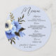 Elegant Watercolor Blue Floral Round Wedding Menu