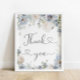 Elegant Watercolor Blue Floral Thank You Poster