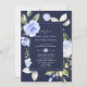 Elegant Delicate Blue Flowers Wedding card design featuring delicate watercolor blue flowers frame, on a midnight blue background. Use Personalise tool to add your info, change fonts, font's colours. For matching items, please, visit my Blue Floral Bloom Collection.